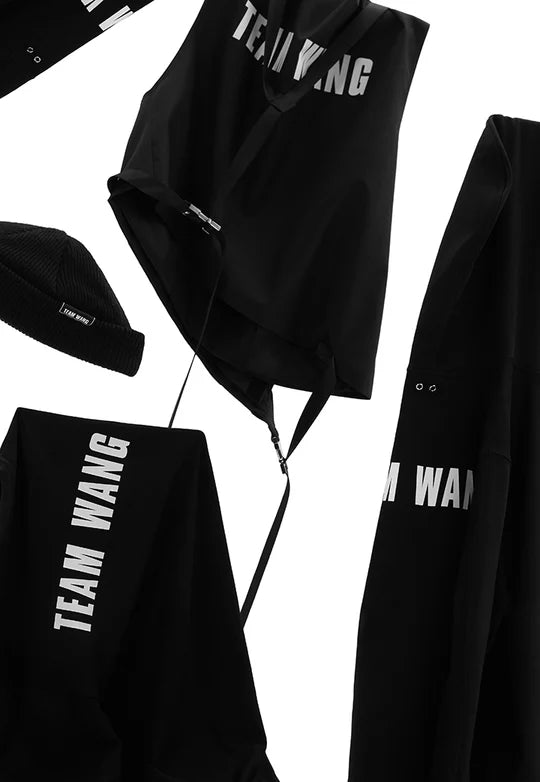In THE ORIGINAL which is the first series of TEAM WANG design COOKIES, TEAM WANG wants to present the most iconic designs and products of the brand. THE ORIGINAL launched 8 skus, including T-shirt, sweater, hoodie, jacket, knitted hat, sport shorts, sport pants, work wear, vest, and chest pack. Through the experiment for the materials and the modification in details, we try to gift the basic product the unprecedented possibility. On the base of practicality for the sportswear, we select high quality comfortable cotton to improve the tactile experience of wearer. In the world of TEAM WANG, we lay stress on team cohesion and respect the personal expression of individuals. The EYELET design in the back of collar is the perfect presentation for the spirit of our brand. Every product of TEAM WANG design can be connected with EYELET which symbolizes the solidarity between members of TEAM WANG design. You may also hang different accessories through EYELET for the possibility of individuality. In the meantime, it is also like a pair of eyes behind the back which offers you a vision of more dimensions.