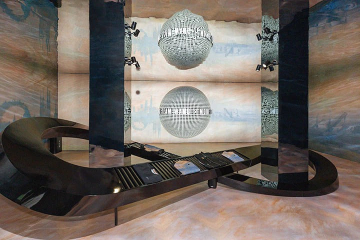On the base of the impressionist style in the original painting, the port of Le Havre is substituted by the Bund of Shanghai. Its reflection in the water becomes The Eiffel Tower. The rising sun becomes the DNA of TEAM WANG design which represents hope and new possibilities of which he explores and pursues relentlessly. The glowing sphere at the core position of the overall space is the artistic installation derived from the DNA of TEAM WANG design for the implication of infinite hope. The transmission belt at the center of the space is designed as the shape of ∞, the symbol of infinity which echoes with the rising sun. Besides visual sense, we will also provide the immersive sensual journey which is unique for your sense of smell and hearing to help you feel the artistic charm of Monet and unique aesthetics of TEAM WANG design in all directions.