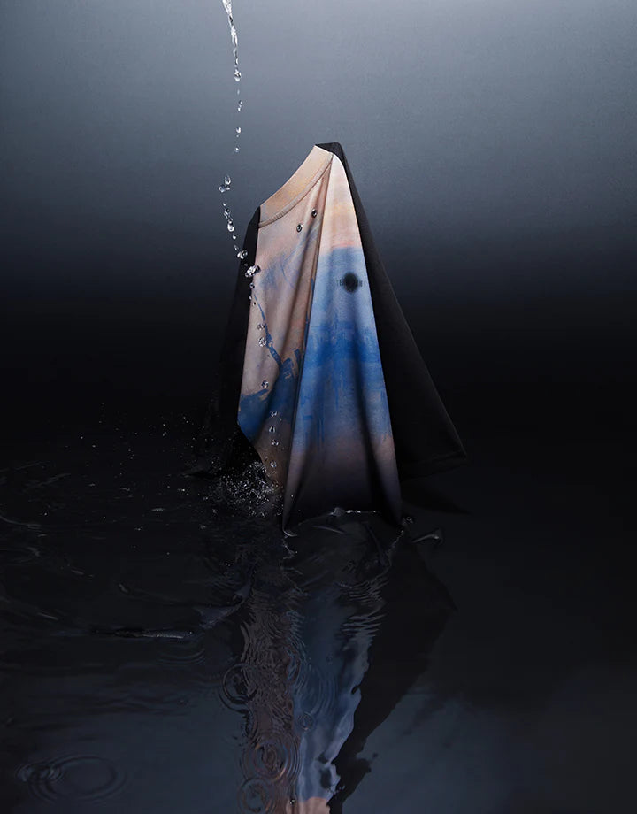 In the TEAM WANG design x MONET SPARKLES capsule collection, we try to create a fusion between art and fashion and present the beauty of Impressionist Art from the details. The abstract print on the back of each item is our unique interpretation of Impression Sunrise. The TEAM WANG logo on the front is redesigned in gradient colour, which is typically seen in the works of Impressionist Art. In the meantime, our iconic designs such as the EYELET are remained so that the TEAM WANG DNA gets continued in this SPARKLES capsule collection.
