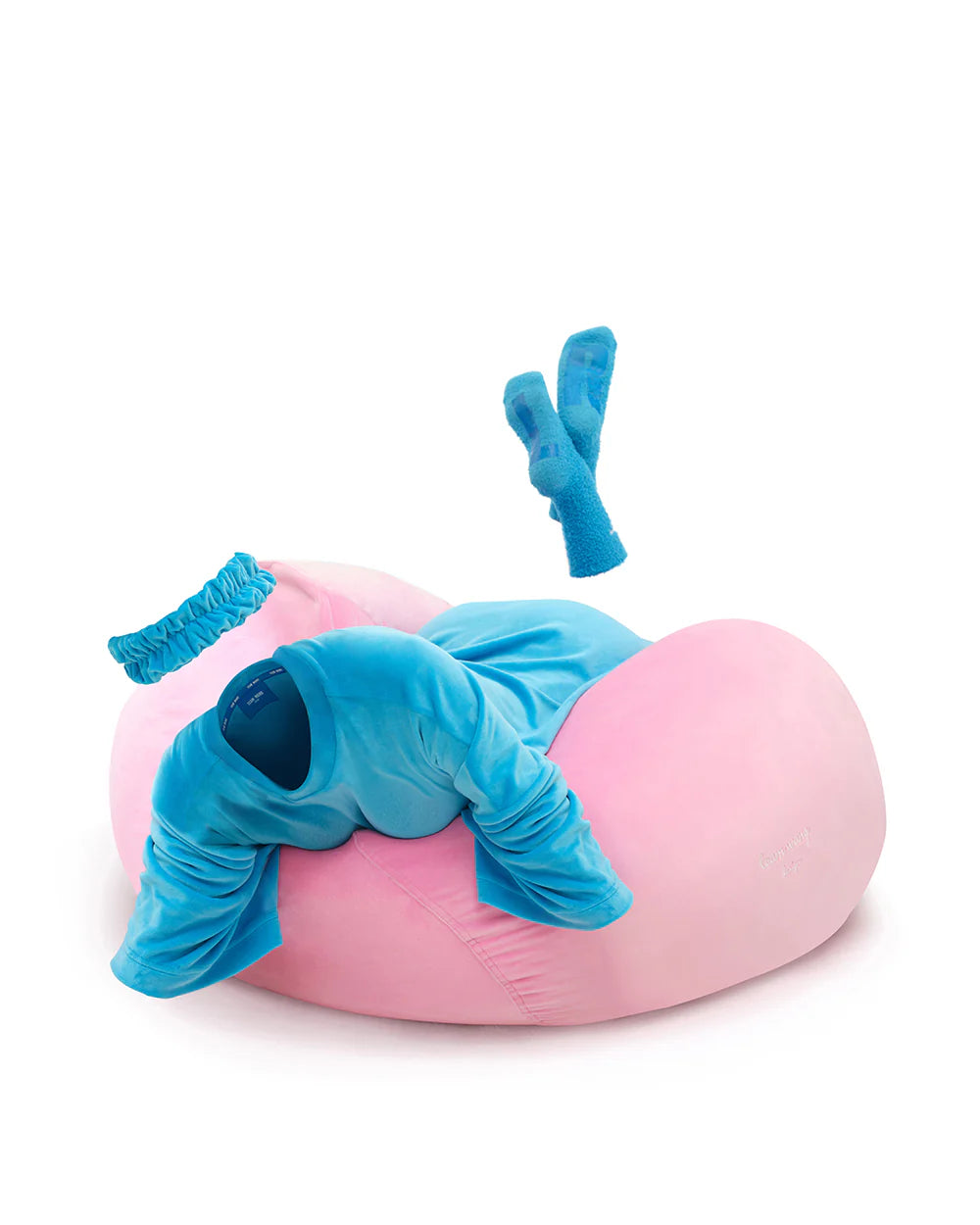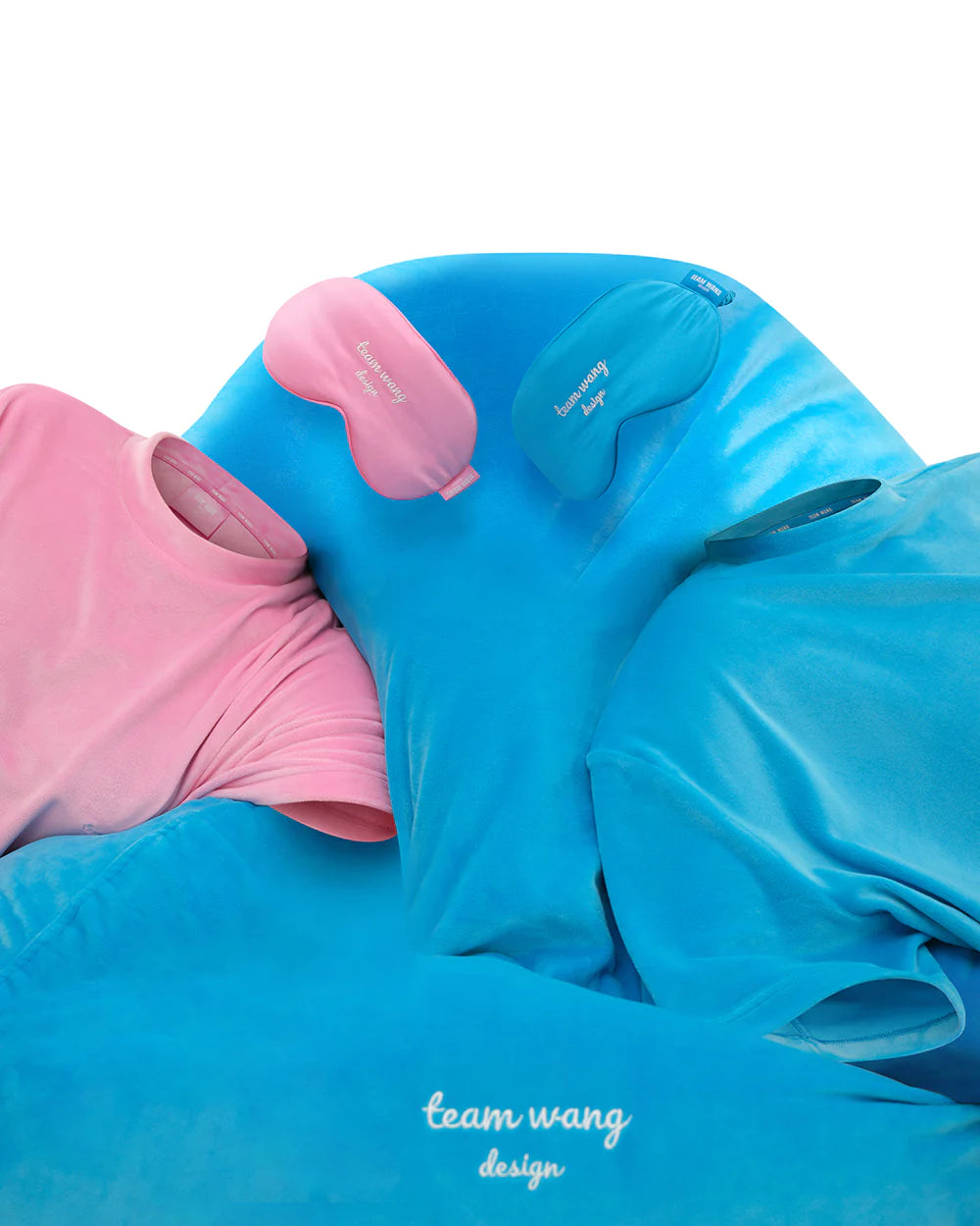 The super oversized style also creates a sense of spontaneity and leisureness in the embrace of the night. On top of that, STAY FOR THE NIGHT also brings in a new, lightweight bean bag sofa, as well as eye masks, hair ties, socks, storage bags, and other home collection items. Specifically designed for those cozy nights and twilight hours, this collection brings healing and relaxation into everyone’s homes. Several items in the collection are embroidered with “team wang design” in white handwriting, showcasing the brand’s personality and detailed thinking. Whether it’s the vibrant blue-pink palette, the bright silver EYELET, or the merge of classic and forward designs, TEAM WANG design has fabricated a comforting atmosphere for the night.